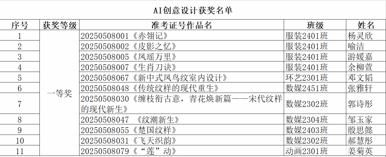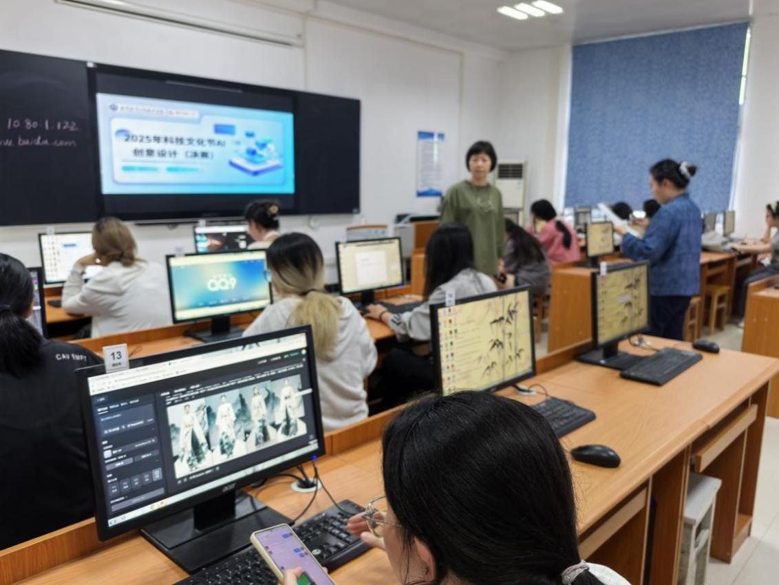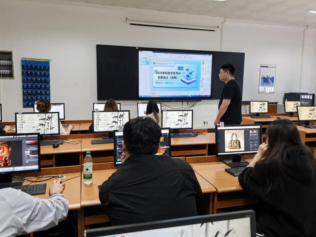 (通讯员:余刚)在2025年大学生科技文化展暨职教周学生技能节期间,艺术与传媒学院以“AI赋能、非遗智创、青年智创幸福生活”为主题,于5月8日下午成功举办首届AI创意设计大赛决赛。此次活动通过人工智能技术与楚地非遗文化的创新融合,构建了非遗活态保护的青年实践样本。赛事聚焦“传统纹样的现代重生”创作方向,依托跨学科协同创新机制,吸引了数媒、服装设计等六大专业405件初赛作品。经严格评审,80组选手晋级决赛,最终58件作品分获各级奖项,其中《赤翎记》等11项作品摘得桂冠。决赛现场设在第二实训楼,参赛团队运用生成对抗网络、风格迁移等AI技术,对楚绣、青铜器纹样进行数字化解构。服装设计专业喻同学作品《皮影之忆》,通过深度学习构建皮影戏数据库,实现传统图案的智能重组与三维呈现,获评审组高度评价。
