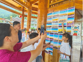 (通讯员:张丹 黄璐璐;摄影:黄璐璐)7月28日,恩施州宣恩县长潭河侗族乡的孩子们,第一次有了自己的艺术展,来自武汉软件工程职业学院艺术与传媒学院“蒲公英计划”志愿服务支教团队的成员,将支教20天中带领孩子们一起完成的作品,在长潭河乡萨玛广场上精心布置起来,为孩子们举办了自己的艺术展,团队还邀请了家长及附近居民共同观看,赢得了声声赞美、阵阵好评。