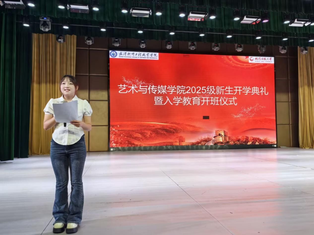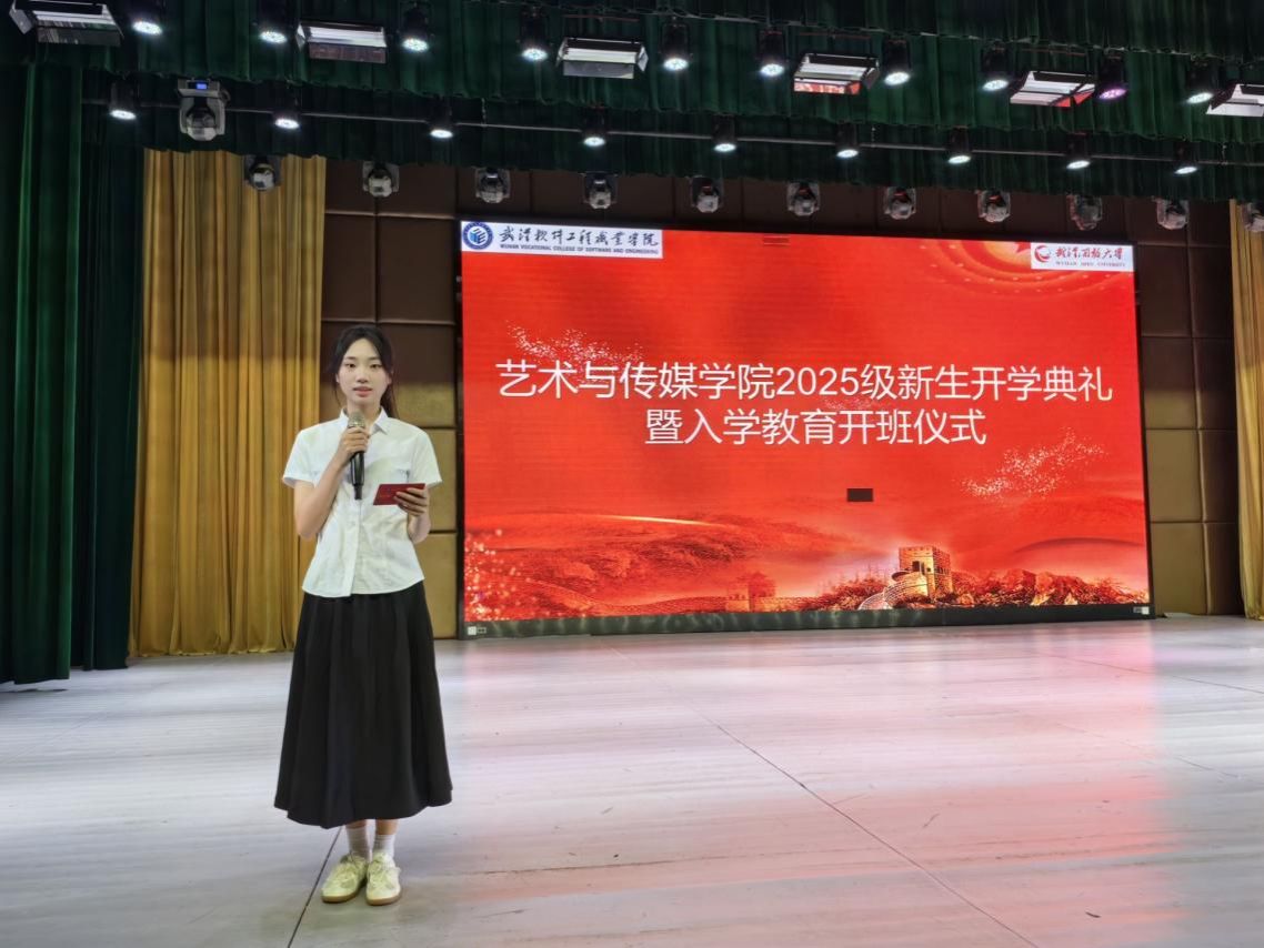 典礼在悠扬的武软校歌中拉开帷幕。优秀老生代表、24级融媒体专业邹欣雨同学在发言中分享了自己在校生活与学习的感悟,鼓励新生积极向上、主动进取,勇于在大学阶段争取各类成长机会。