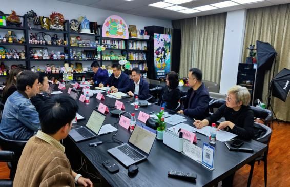在企业负责人的陪同下,校领导先后参观了公司办公、创作区域等场所。通过实地走访和细致讲解,全面了解了两点十分公司的发展历程、核心业务布局及行业成绩,深入考察了各部门职能设置与人才队伍情况。随后,大家集中观看了企业宣传片及PPT讲解,直观感受了公司在文化创意领域的创新实力与发展潜力。