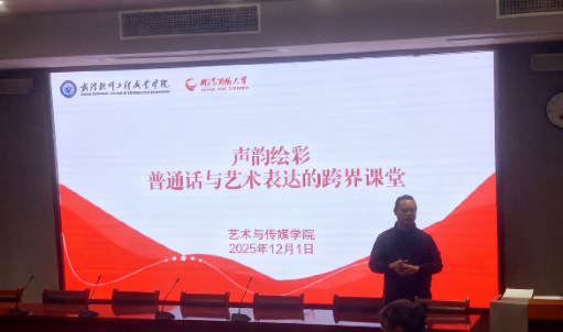 (通讯员 张璐璐)为提升师生普通话应用能力、助力普通话水平测试备考,2025 年 12 月 1 日,艺术与传媒学院在学术楼三号报告厅开展 “声韵绘彩 —— 普通话与艺术表达的跨界课堂” 培训。本次活动由湖北省普通话骨干测试员陈刚老师主讲,百余名师生共同参与。