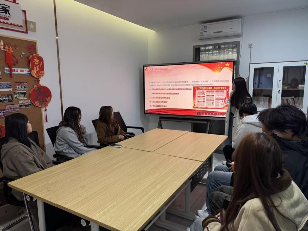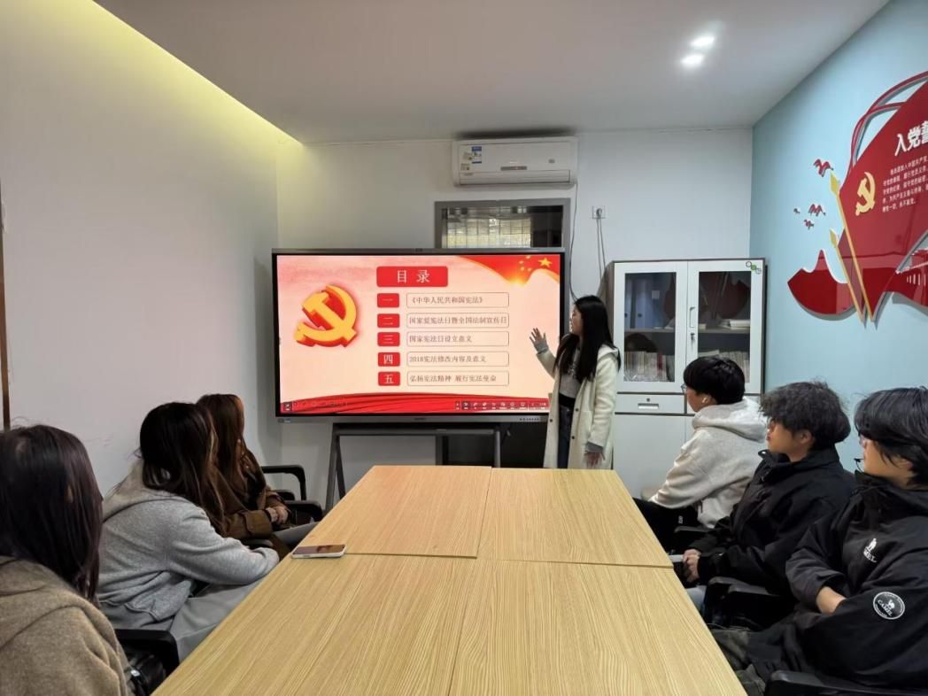 (通讯员:龚佳瑶、杨竣凯)2025年12月4日,为深入学习宣传宪法知识,增强青年学生法治意识,在第十一个国家宪法日来临之际,艺术与传媒学院在五栋一站式社区开展“弘扬宪法精神·争做法治青年”主题宣讲活动。本次活动由辅导员杨竣凯老师主持,数媒2502班龚佳瑶同学主讲。