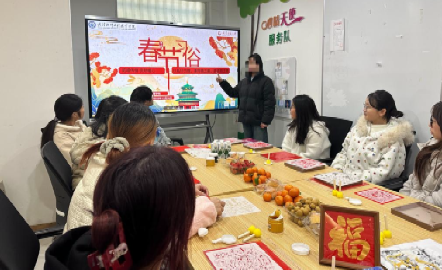 “拓福迎春” 拓印环节亮点纷呈。学院精心备好福字、锦鲤等吉祥拓印模板与工具,在资助联络员张璐璐老师完成示范后,同学们充分发挥主人翁精神,率先拿起拓板主动上手,热情地教在场领导体验拓印技巧。蘸墨、铺纸、轻敲,墨香袅袅氤氲开来,同学们手把手细致指导,耐心叮嘱着拓印的诀窍;领导们认真学习、悉心领悟,现场氛围暖意融融、其乐融融。