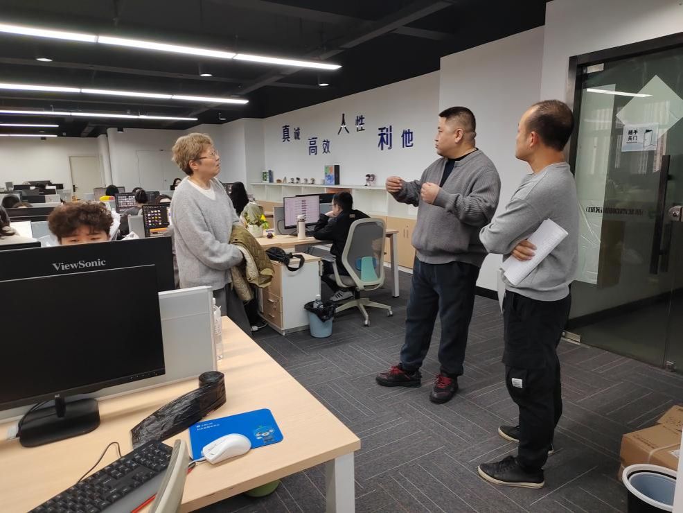 调研伊始,在李总的带领下,程丽琴院长一行先后参观了公司办公区域、业务展示区,全面了解企业的运营架构与核心业务模块。据悉,湖北贝高信息技术有限公司成立于2019年,深耕科技推广和应用服务领域,业务范围涵盖软件开发、数字技术服务、广告设计与代理、网络媒体运营等多个板块,凭借多元布局与技术创新,在行业内形成了良好的发展态势。通过实地参观与细致询问,调研团队对公司的业务布局、运营模式、发展规划有了系统且全面地认识,为后续校企合作找准了切入点。