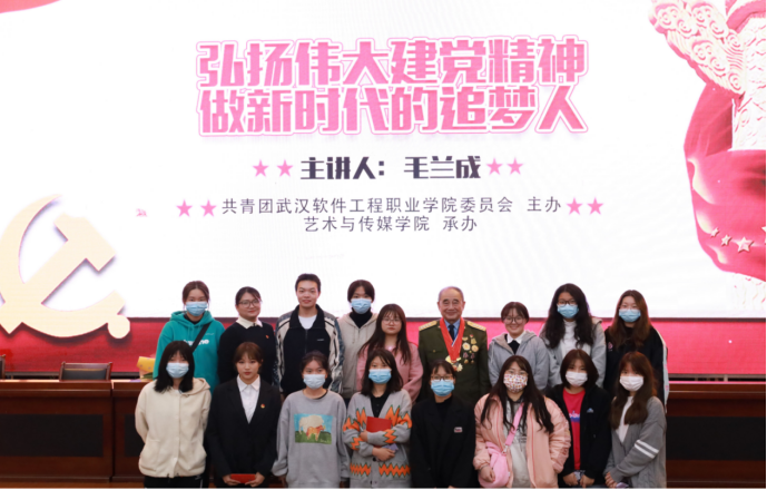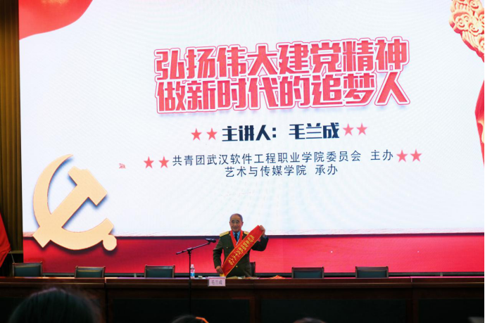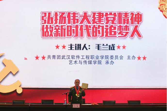 2021年十月二十一日下午两点,毛兰成团长参与我校由校团委主办,艺术与传媒学院团总支承办的《弘扬伟大建党精神,做新时代的追梦人》讲座在武汉软件工程职业学院学术楼一号报告厅举行。