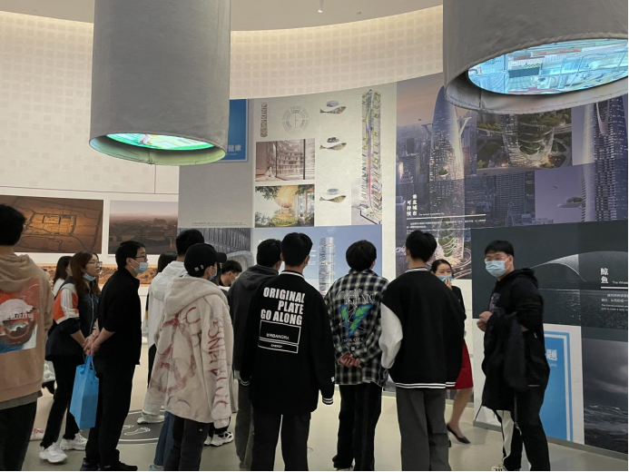 随后,在讲解员的带领下分别参观了古代建筑展厅、荆楚建筑展厅、现代建筑展厅、未来建筑展厅,同学们对中国的建筑文化有了更加深刻的理解。未来建筑博物馆成为此次展馆的一个亮点,引发了同学们对于未来建筑的遐想和构思,设计的理念十分新颖,并且从前人的忧思到杞人七问,巧妙的将伦理社会、人口问题、环境问题、生理健康、心理健康、能源与资源和自然灾害七个内容利用建筑设计的方式来进行一个完善和预备。期间,环艺教研室陈明老师还现场教学,讲解了从古至今直至未来的代表性建筑,引发学生对未来空间、人居环境的思考,并组织学生以古代建筑、荆楚建筑、现代建筑和未来建筑为题材进行现场速写。