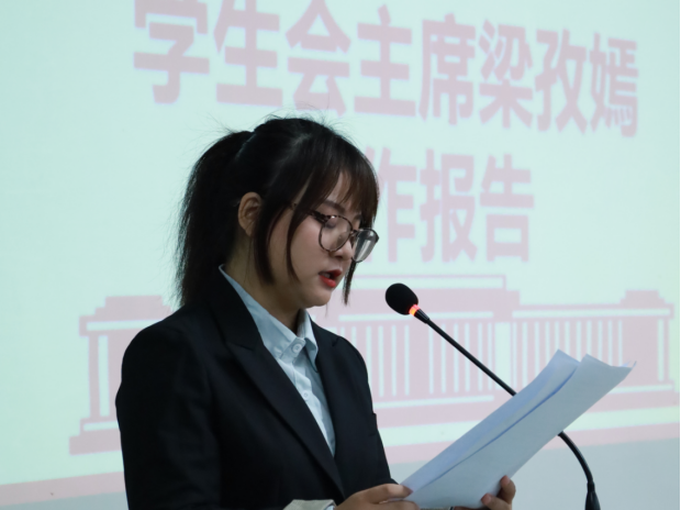 学生会主席梁孜嫣代表艺术与传媒学院学生委员会在大会上做工作报告,对于进一步修订完善学生会规章制度,制定新部门管理条例,深化社会主义思想,艺院各大志愿服务,艺院各项大型活动进行回顾总结和分享。并表示,学生会是学校联系广大同学的桥梁和纽带,以全心全意服务同学为宗旨,发挥学校广大同学的桥梁和纽带作用。依照学校规章制度和各自的章程开展工作。学生会工作人员要牢记服务同学宗旨。学生会是全体同学的学生会,学生会工作人员没有居高临下的管理权,也不会有高人一等的优越感。