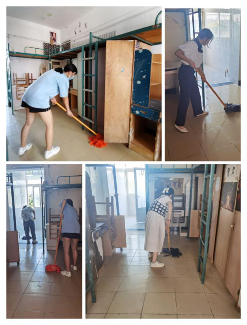 在新生报道之前,志愿者们就开始帮忙打扫新生宿舍,确保干净整洁,迎接学弟学妹。