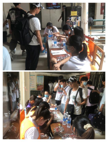 迎新工作如火如荼,到处都是忙碌的身影。有指引学生报到的志愿者;有帮忙新生搬运行李的学长学姐;有核实新生身份的党员学生们,有帮助新生办理入住手续的工作人员;综合楼也有志愿者值班,等待晚上到达的新生。