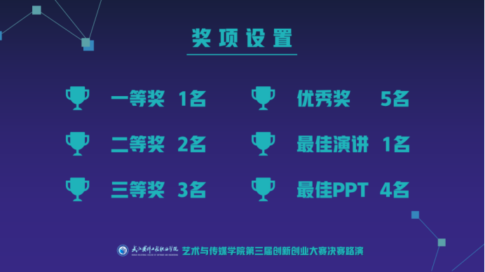 为鼓励同学们积极参与,本次大赛奖项设置众多,具体如下:一等奖1名,二等奖2名、三等奖3名、优秀奖5名、最佳演讲1名、最佳PPT1名。