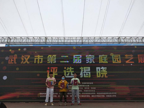 2021 年4 月30 日——5 月7 日,由武汉市绿化委员会、武汉市园林和林业局主办的武汉市第二届家庭园艺展比赛在武汉市解放公园和谐文化广场举行。本次参赛选手有来自园林行业优秀企业的能工巧匠,也有家庭园艺里经验十足的老手,以及湖北省十余所本专科院校相关专业学生。面对强手如云的竞争对手,同台竞技,我校园林工程技术专业学生选手,毫不示弱,顶着烈日,在比赛中沉着应战,现场制作,发挥了良好的专业技能水平。我校五组学生作品,分别获得两项一等奖,三项二等奖,团体第一名的好成绩。在学院领导的大力支持下,我院园林工程技术专业侯永胜、王婷、李诗恕、黄贝娜四位教师担任了比赛训练的技术指导和教练,对选手进行选拔和集训,利用节假休息日,加班加点紧张备战。