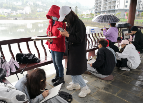 这几天同学们来到小西湖、杨树坪、雄关古道、关口老街、龙王淌等取景地,这里湖面波澜不惊的水纹配上若隐若现的山影,木结构式吊脚楼建筑,古老的街道与自然美景融合在一起,显得格外生动,激发了同学们的创作热情。