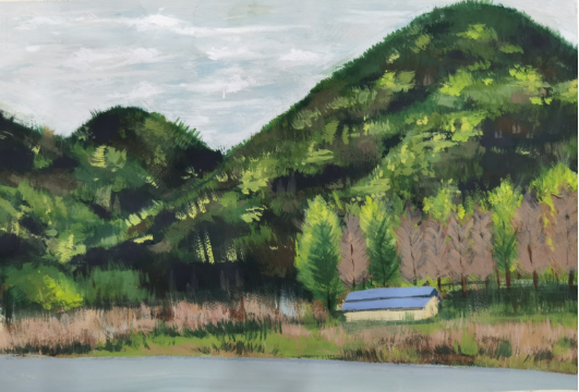 很多同学都是第一次出远门,对于长达7小时的车途,同学们除了激动的心情就是期待,一路上的美景也有意想不到的收获,让旅途的劳累也减轻了许多。我们从大巴车特有的超大车窗,观赏到沿途的风景,朦胧的远山,笼罩着一层轻纱,影影绰绰,在飘渺的云烟中忽远忽近,若即若离.就像是几笔淡墨,抹在蓝色的天边,山上五颜六色的花儿争先绽放着,这里与繁华的城市生活形成鲜明的对比,连绵起伏的山,雅致的色调都给大家别样的舒适感。艺术素质的培养是个一点一滴积累的过程,也包括感官欣赏上的提高,写生能够让我们更好地体会了读万卷书,行万里路。