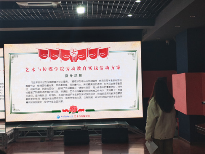 随后,艺术与传媒学院党总支副书记张胜洪老师对我们即将开展的劳动周活动进行指导。“劳动可以锻炼学生身体,同时我们在劳动中可以养成一些良好的习惯,而这些习惯会慢慢潜移默化成为我们独特的闪光点。同时在接下来的劳动周希望各位能从我做起,从身边的小事做起,同时要以身作则,因为说服别人最好的理由就是自己也做到了!”