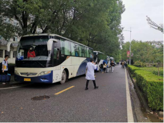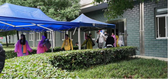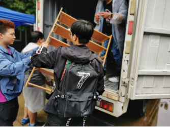 学院提前准备好了多个编织袋和一次性雨衣,方便学生打包和运输行李;同时,还提前安排好了接送学生往返的巴士,以便学生在新宿舍和老校区两边自由往返。早8点,学院志愿者们早已等候在新旧宿舍门口,一边解答学生们的搬迁中的疑惑,消除搬迁过程中的混乱感;一边主动帮助行李多的学生提行李,拎箱子,身体力行地为学院做出更多贡献。