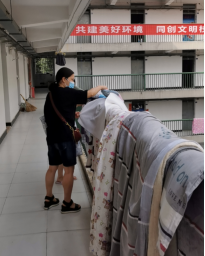 班主任们主动帮助学生提行李、晒被褥,以行动感召学生,身体力行做到“防疫有我,爱卫前行”。