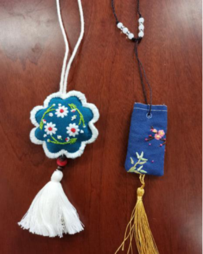 香包刺绣又称“陇绣”,是中国传统刺绣工艺之一,针脚要求“左看是行行,右看是样样”。这一传统技艺充分展示女性心灵手巧的另一片天地。服装教研室彭慧老师在上工艺课的同时,将环境与角色、作品与创新、任务与进程结合,通过明确实训目标、创新实训教学方式,带动学生对“工匠精神”的认知,依托教学过程合理设定情境,引导学生设计制作、获取感知、体验所学知识,以学生的兴趣和爱好为出发点,将传统工艺与现代手工结合在一起,制作各种香囊、挂饰,丰富手工工艺课堂,取得了较好的教学效果。