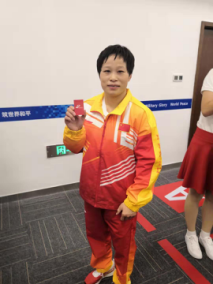 女子自由式摔跤50公斤级冠军李玉燕展示自己的手翻书