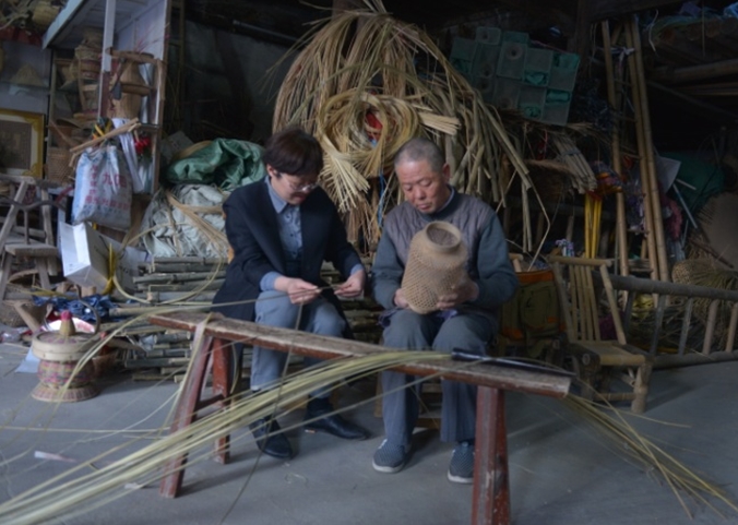 4月2-3日,为了切实推进优质校三年行动计划非遗文化传承项目建设,艺术与传媒学院副院长程丽琴来到潜江市龙湾镇、老新镇向非遗传承人学习传统工艺。现年69岁的张宗明师傅是潜江花鼓戏传统戏服戏帽制作技术的唯一传承人,特别是奎帽的工艺制作手法,因其制作过程复杂、原材料缺失,现已无法大量制作。现年72岁的陈正和师傅是潜江竹编灯彩的传承人,竹编灯彩历史悠久、工艺讲究是潜江当地百姓常备的生活用具。