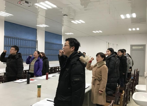 按照“支部主题党日”活动规定动作,全体党员奏唱了国歌,重温了入党誓词,并认真诵读了党章部分章节。