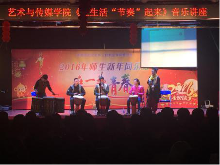(通讯员:冯舒雅/摄影:刘伟)音乐是一种节奏,一种旋律,一种艺术,是生活最美的调味剂。3月16日下午6点30分,艺术与传媒学院邀请了湖北电台资深音乐Dj、非洲手鼓湖北推广人杨东老师为广大师生开展了一场以《让生活“节奏”起来》为主题的音乐讲座。在音乐节奏的带动下,全场热情高涨,四百多名师生随着节奏去感受音乐,感受生活。