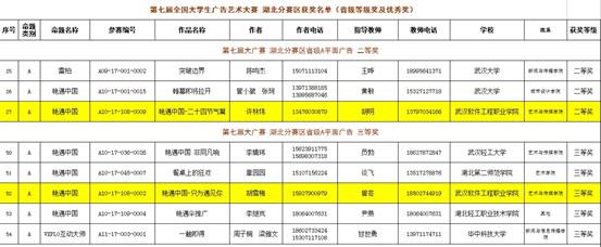 在此次比赛中,由艺术与传媒学院陈天荣院长带队,视觉传达教研室胡明、曾芸等老师们组成了代表队,老师们带领自己指导的学生参赛,苦战二个多月,共提交六幅平面作品,在平面项目共获得省级二等奖一项、三等奖一项的好成绩,这些成绩的取得与学校领导大力的支持和关心、老师的无私奉献以及学生辛勤努力分不开的。