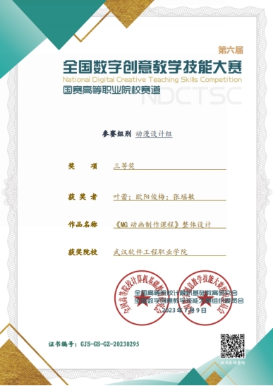 近日第六届全国数字创意教学技能大赛获奖名单揭晓,艺术传媒学院教师在此次大赛国赛中获得三等奖1项。全国数字创意教学技能大赛由全国高等院校计算机基础教育研究会、全国数字创意教学技能大赛组委会主办,中国电子视像行业协会数字影像创意委员会协办,并被教育部高教学会正式列入《全国普通高校教师教学竞赛排行榜》项目。