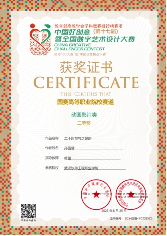 日前,第十七届中国好创意暨全国数字艺术设计大赛国赛及省赛获奖名单公布,艺术与传媒学院数字媒体艺术设计学生获国家级一等奖2项、二等奖3项、三等奖3项,省级一等奖3项、省级二等奖4项,教师胡明、叶蕾、陈兵、谌琪、张瑶敏获得优秀指导教师称号。