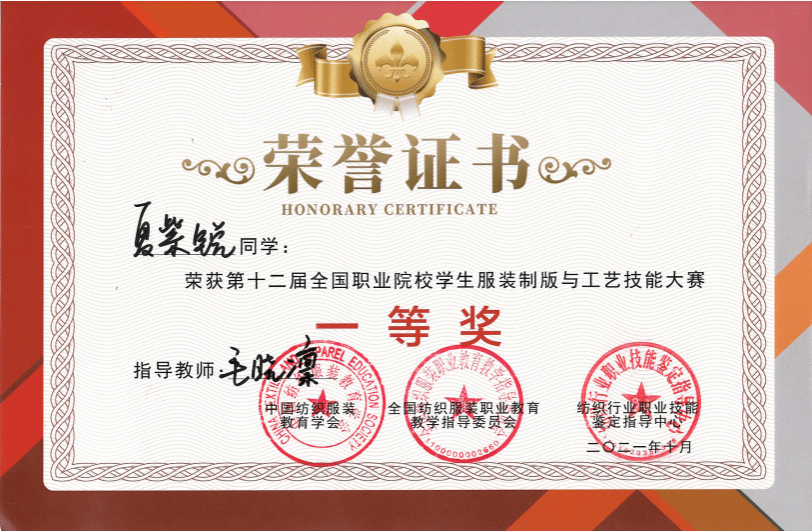 服装2019届唐雪莲 杜敏珍获“全国职业技能标兵”荣誉称号