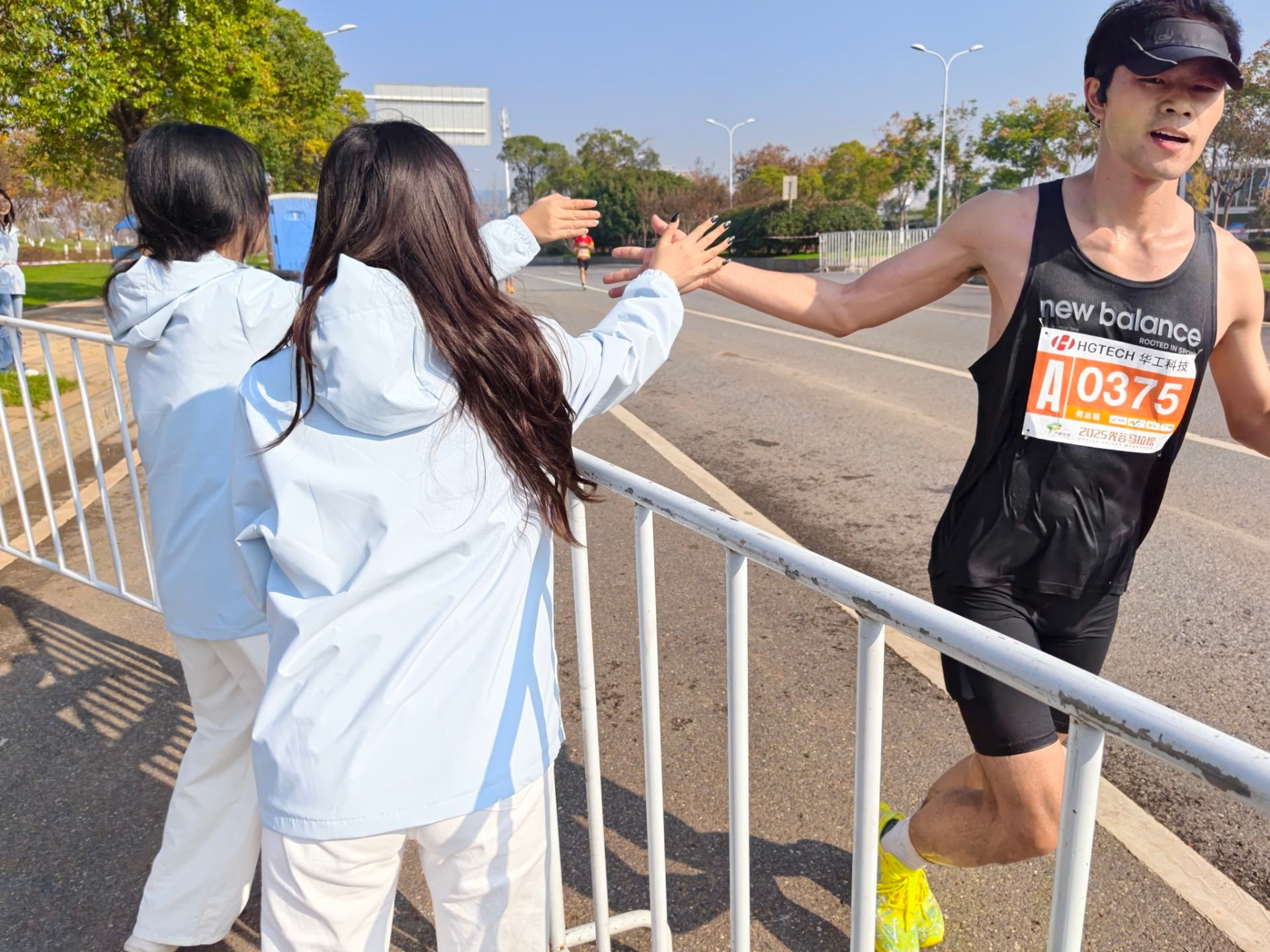 随着首批精英选手和大众跑者陆续经过,服务点的气氛瞬间被点燃。志愿者们挥舞着手中的旗帜和加油棒,齐声高喊“加油!坚持就是胜利!”“你们是最棒的!”,嘹亮而富有感染力的呐喊声此起彼伏,响彻云霄。他们用最真诚的笑容和最热烈的掌声,迎接每一位奋力前行的跑者。许多跑者在听到这突如其来的声浪助威后,疲惫的脸上重新绽放出笑容,或挥手致意,或加速冲刺,与志愿者们形成了积极动人的赛场互动。