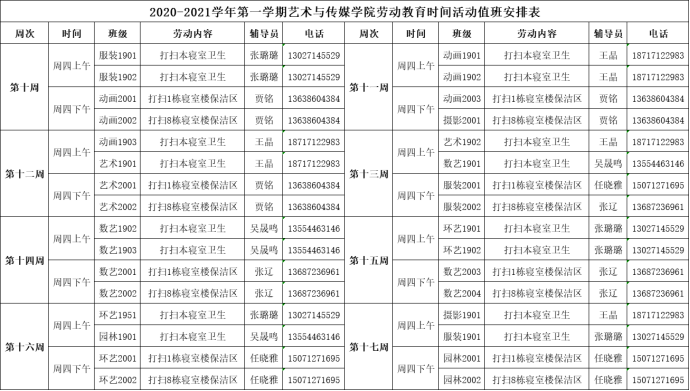 艺术与传媒学院积极响应号召,第一时间制定了学校要求对应的学院活动方案与实施细则。目的在于创建整洁文明的校园环境,营造团结勤劳的浓厚氛围;调动学生的劳动热情,锻炼和提高学生的身体素质;提高学生的道德素养,养成良好的文明卫生习惯。
