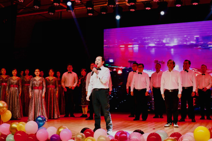 晚会由校舞蹈队《纸扇书生》的精彩演出中拉开序幕,诗歌朗诵《我爱我的祖国》让每个人都肃然起敬,接着在观众的掌声中李建强副院长对2019年度获奖学生进行表彰,表彰同学如下:陈欢、雷丹妍、严妍、王洪生四位同学获国家级数字艺术设计大赛(NCDA)一等奖,李一顺同学获国家级书偶创意设计征集优秀作品奖,吴丽君、刘洋获省级职业院校技能大赛园林景观设计奖一等奖等。随后辅导员《野狼disco》把晚会推向了高潮,小品《偶像剧》让台下观众笑声不断。院系领导班子刘克勤书记、程丽琴院长、张胜洪书记、李建强副院长,党员老师吴小丽、詹仲恺,张泽勇等全体党员教师合唱《长江之歌》《歌唱祖国》带给晚会的第二次高潮,晚会也在教师们美妙的声音盛宴中缓缓落下帷幕。