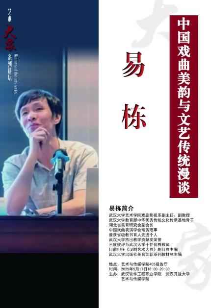 为丰富校园文化生活,提升同学们的艺术素养与文化认知,学院特别邀请到武汉大学艺术学院戏剧影视系知名教授易栋老师,于5月13日晚18:00,在艺术学院楼405报告厅开展专题讲座。讲座吸引了众多师生到场聆听,现场座无虚席,气氛热烈。